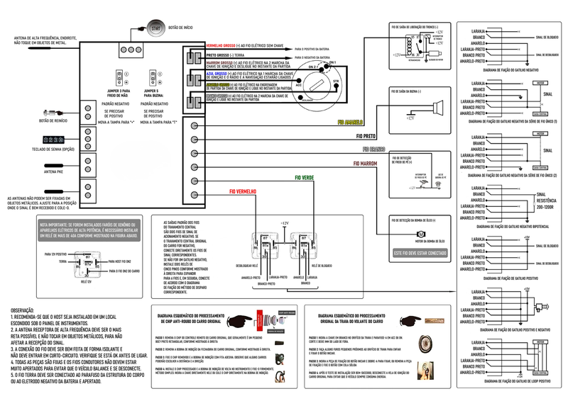 | Verde (Green) | (-) Negativo | Fio de travamento (Lock Line). Usa relés se o carro for pulso positivo. |