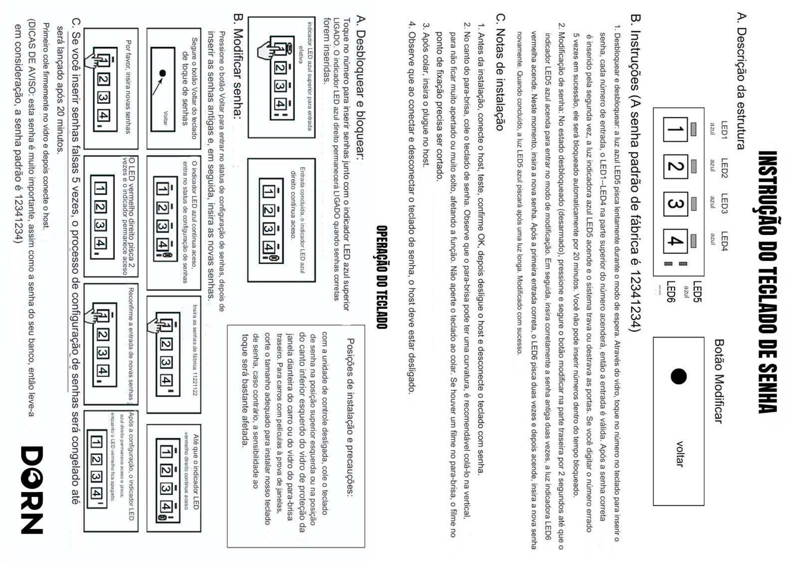 Consulte abaixo as ilustrações detalhadas do diagrama de instalação, teclado de senha e interface do aplicativo móvel. Clique nas imagens para baixar o arquivo original.